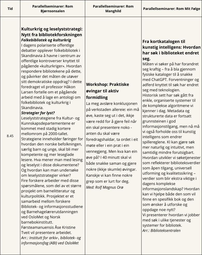 Bibliotekmøtet 2026: Parallellseminarer